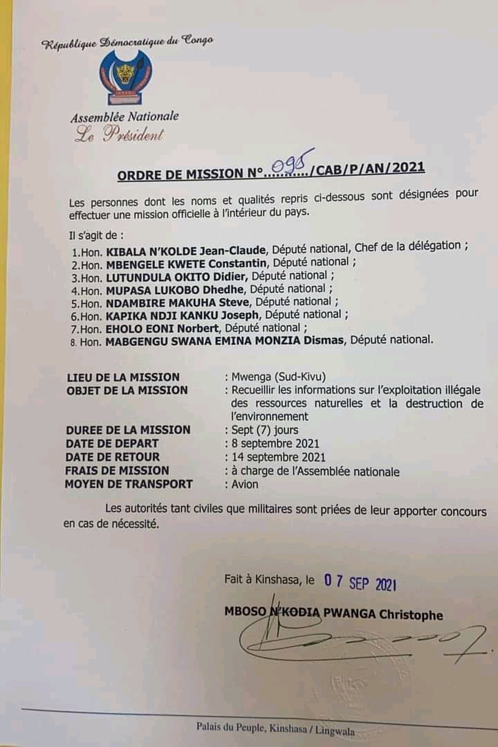 RDC/ POLITIQUE : Exploitation anarchique et illegale des minerais Ć Mwenga : l’assemblĆ©e nationale dĆ©pĆŖche une dĆ©lĆ©gation des dĆ©putĆ©s nationaux pour enquĆŖter
