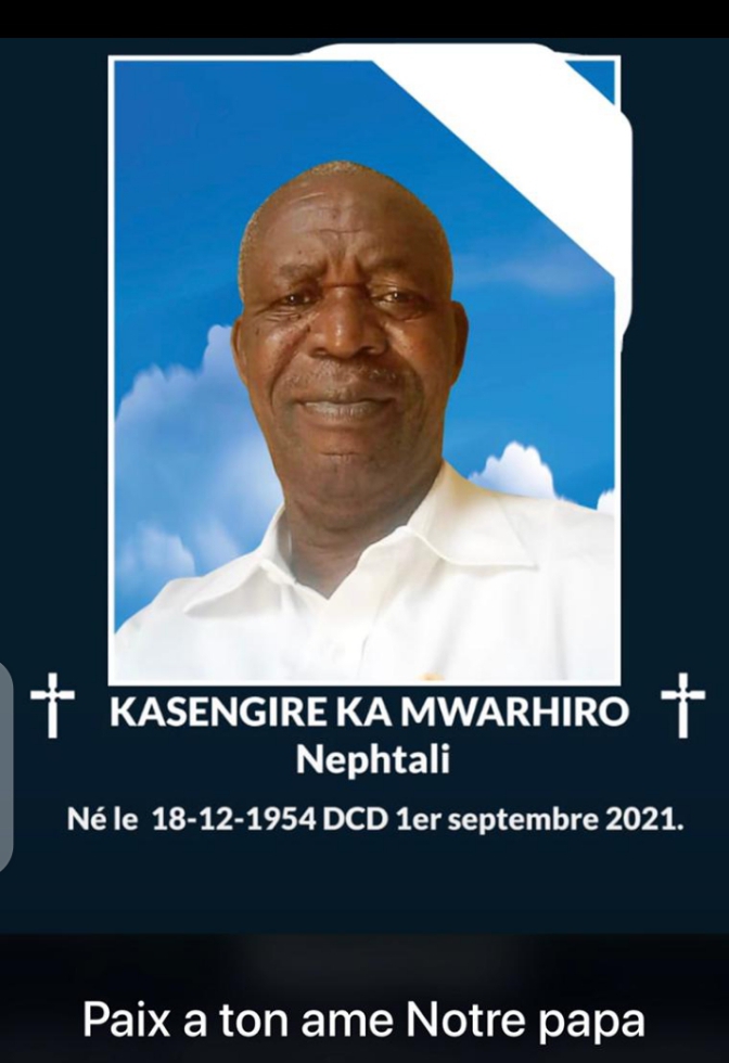 SUD-KIVU/ NĆCROLOGIE : DĆ©cĆØs de Nephtalie KASENGIRE Ka MWARHIRO: Birhenjira Gwa Mugisho Mulikuza, pleure un Grand-PĆØre, un conseiller et un ami