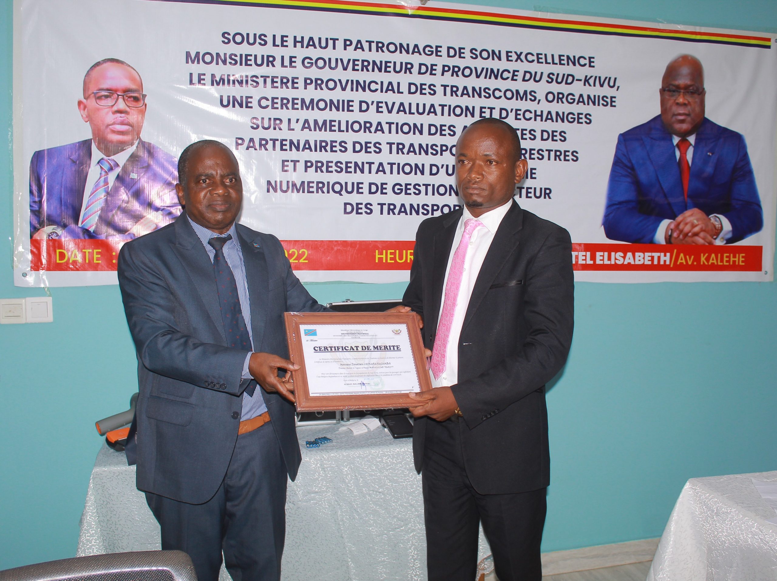 SUD-KIVU/ POLITIQUE : DĆ©signĆ© meilleur transporteur terrestre pour l’annĆ©e 2022, Cikuru Rusumba Damien, Directeur gĆ©nĆ©ral de l’Agence de voyage Mapasa Car rĆ©compensĆ©dd par le MinistĆØre Provincial des transport et tourisme