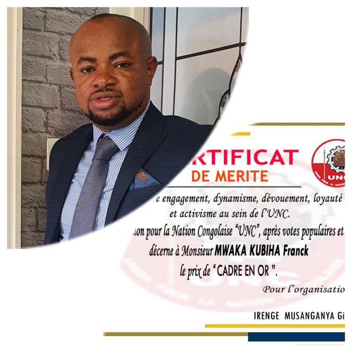 SUD-KIVU/ POLITIQUE : Mwaka Kubiha Franck reçoit le prix « Cadre en or » pour son engagement, dynamisme, dévouement et loyaute
