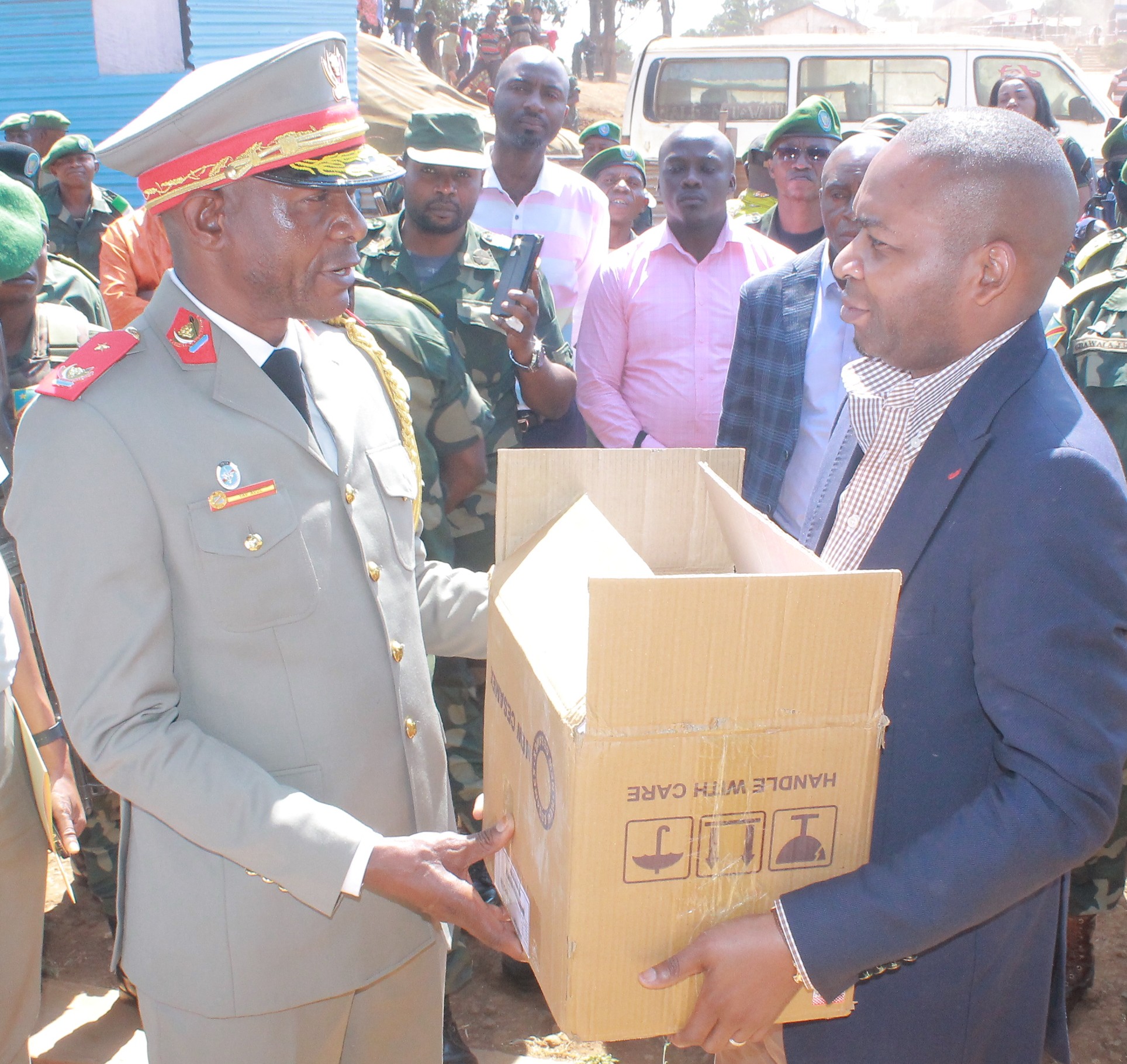 BUKAVU/ SOCIĆTĆ : Soutien aux FARDC: TrĆ©sor Mutiki remet un lot important au centre Hospitalier militaire du Camp SaĆÆo