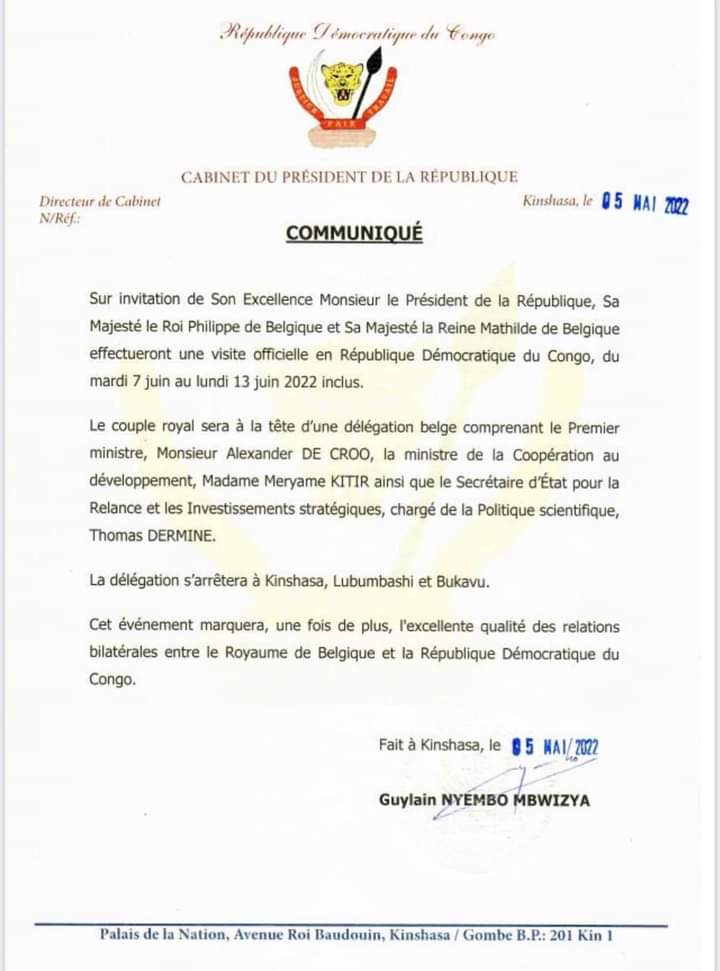 RDC/ POLITIQUE : La prƩsidence confirme la visite de sa majestƩ le Roi Philippe de Belgique et sa majestƩ la Reine Mathilde en RDC du 07 au 13 juin 2022 ( Officiel)