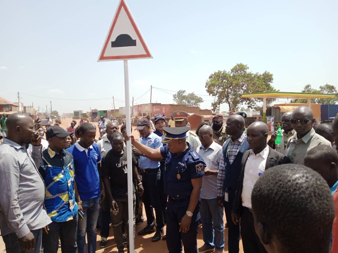 ITURI/ SĆCURITĆ : Richard Mbambi Kitabakulu, Administrateur Policier du territoire d’ARU dans le territoire de l’Ituri vient d’implanter officiellement les tout premiers poteaux de signaux Routiers pour protĆ©ger la population contre les accidents