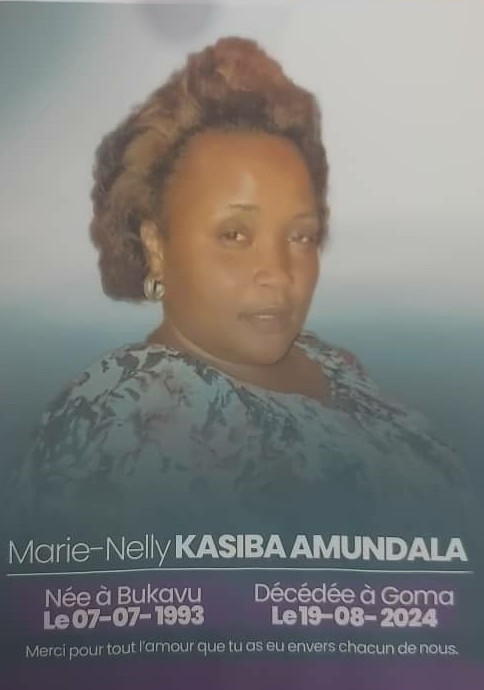 GOMA/ SOCIÉTÉ : Décès de Madame Marie-Nelly KASIBA AMUNDALA, épouse du DG du Groupe de Presse Mashariki RDC: La rédaction annonce la reprise normale du travail le Lundi 02 Septembre 2024