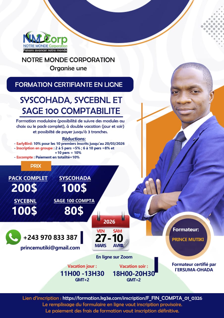 RDC/ SOCIĆTĆ : Formation intensive en comptabilitĆ© : une opportunitĆ© pour devenir opĆ©rationnel en 14 jours