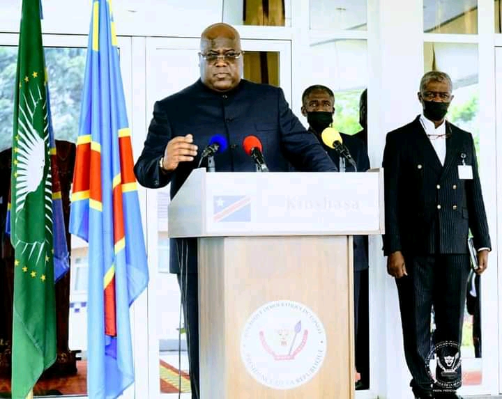 Lumumba-ville (Sankuru) et Kisangani, avant leur ensevelissement à Kinshasa le 30 juin 2021 à la place de l’échangeur de Limete. Une cérémonie qui aurait dû être grandiose, qui aurait dû connaître la participation de tout notre peuple. Malheureusement, ça n’a pas été possible de le faire. Il faut privilégier la santé de nos populations l’a regretté Félix -Antoine Tshisekedi qui s’en est remis à la volonté du seul créateur tout en précisant que le programme initial reste néanmoins inchangé dans ses grandes articulations.