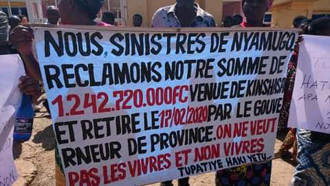 Ces sinistrés réclamerai une somme de 1.242.720.000 Fc envoyée depuis une année maintenant par le gouvernement central.