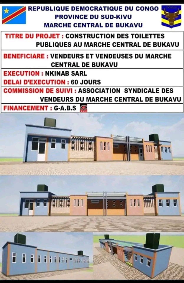 Precisons que ce projet sera exécuté à la demande des vendeurs, vendeuses et clients du marché de Kadutu qui en avaient mare par le manque de toilettes dans cette infrastructure de l’Etat, placé sous la responsabilité de la Mairie de Bukavu.