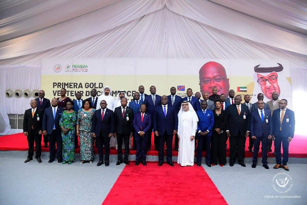 Le Président de la République Démocratique du congo SEM FÉLIX ANTOINE TSHISEKEDI a procédé ce vendredi 13 Janvier 2023 au lancement solennel d’exportation de l’Or artisanal congolais par la société PRIMERA GOLD DRC SA, une joint-venture entre les gouvernements de la RDC et celui des Émirats arabes unis qui ont récemment signé un contrat de partenariat avec comme objectif la canalisation de la chaîne de valeur liée à l’exportation de l’Or afin de mettre fin à la fraude dans le secteur minier et des 3 T en vue de redorer l’image ternie de ces minerais gangrenés jadis par la fraude, la contrebande et l’exploitation illicite au pays en général et particulièrement dans sa partie de l’Est