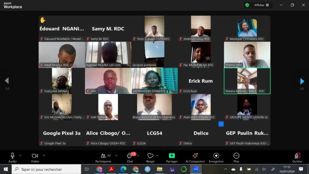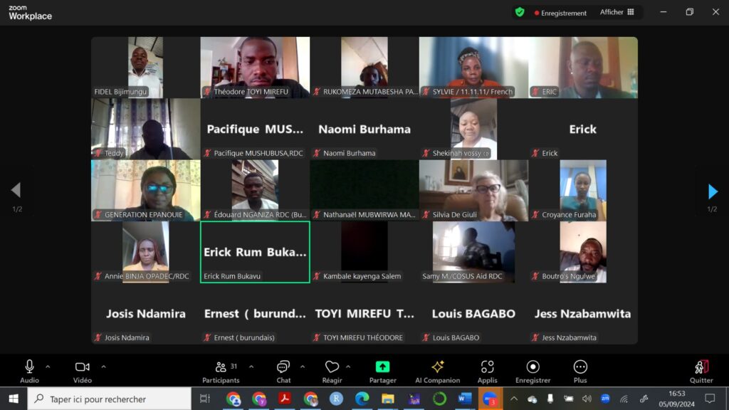 Nous avons réussi à organiser une série d’activités en ligne avec les jeunes des trois pays des Grands-Lacs (Rwanda, Burundi et RD Congo) dont trois groupes des discussions pour récolter les avis des jeunes par rapport à la consolidation de la paix dans la sous-région des grands lacs. Nous avons également organisé près de 12 émissions radios reparties dans les trois pays précités dont 4 au Rwanda, 4 au Burundi et 4 dans la ville de Bukavu (RD Congo), le but étant de recueillir les opinions des jeunes par rapport à leurs rôles, idées et expérience dans la consolidation de la paix.