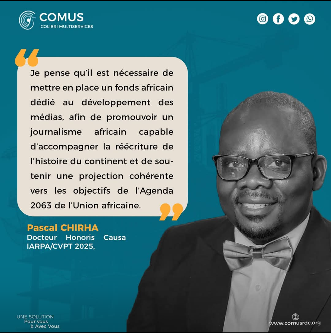 Dans un contexte marqué par les défis de la souveraineté informationnelle et de la crédibilité des récits africains, Pascal Chirha, Directeur de COMUS (Colibri Multi-Service), Docteur Honoris Causa et lauréat de la distinction IARPA / CVPT 2025, appelle à la création d’un fonds africain dédié au développement des médias africains. Un plaidoyer fort qui s’inscrit dans la vision stratégique de l’Agenda 2063 de l’Union africaine.
