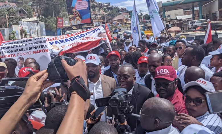 Augustin Matata Ponyo Mapon, est arrivé à Bukavu, jeudi, le 01 Juin 2023 à la tête d’une forte délégation de son partie politique Leadership et Gouvernance pour le Développement (LGD). Acceuillie par une foule constituée principalement des militants de son parti politique, Matata Ponyo Mapon est allé s’entretenir avec eux sur l’actualité de l’heure et sur bien d’autre sujets.
