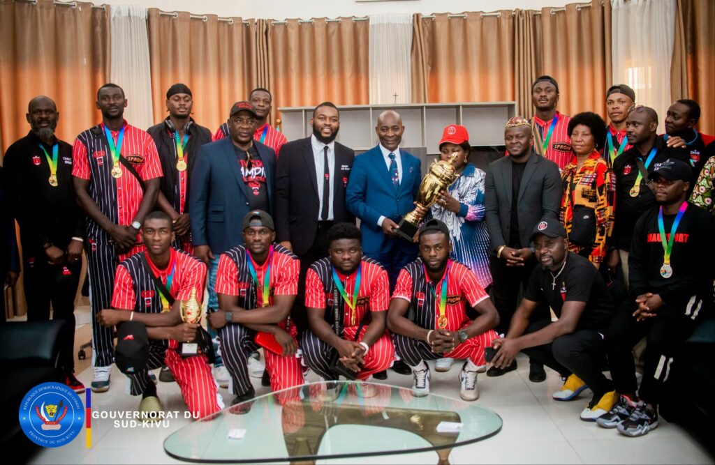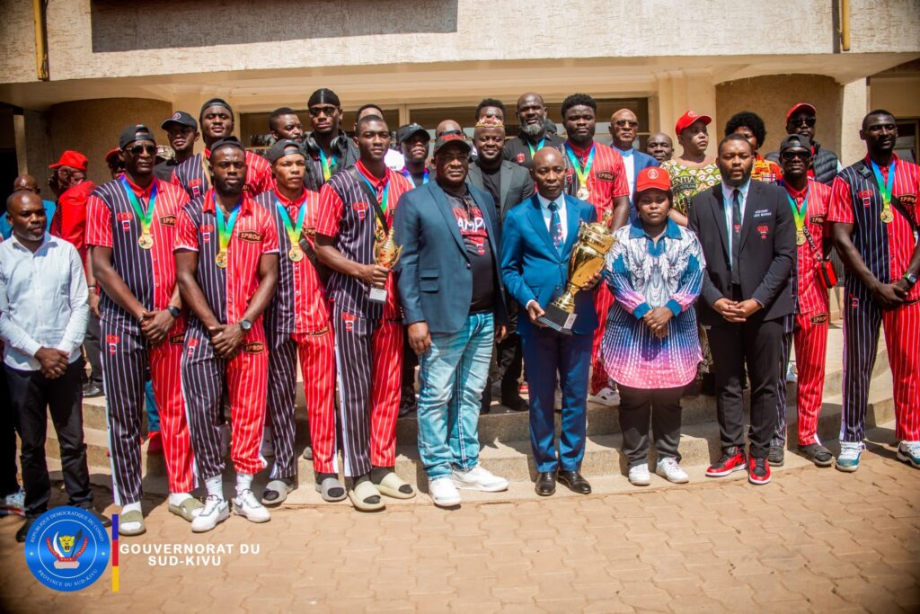 Les lampions de la 41ème édition de la Coupe du Congo de Basketball se sont éteints le week-end dernier dans la capitale Kinshasa. En version masculine, le BC CHAUX SPORT a infligé un revers en finale au BC TERREUR de Kinshasa, sur un score sans appel de 73 points à 65, et s’est adjugé la plus belle des récompenses de la compétition. Aussitôt arrivée à Bukavu, l’ensemble de la délégation avec dans sa suite son promoteur, l’homme d’affaires Didi MUGODO, le Président de l’équipe Serge MUDOGO, tous les joueurs et membres du Staff technique se sont directement dirigés au cabinet du Gouverneur ce samedi 14 septembre 2024 où ils ont présenté les trophées glanés au Premier sportif de la Province, le Gouverneur Jean-Jacques PURUSI SADIKI.