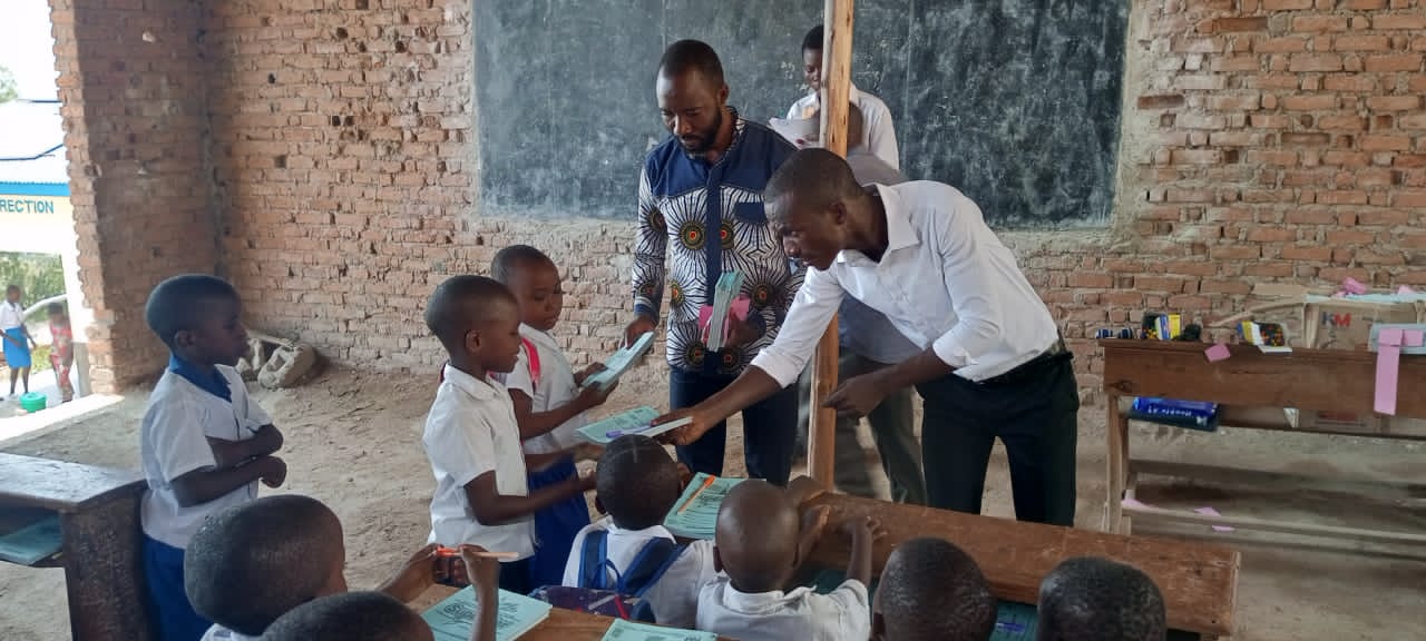 La séance de remise, tenue dans l’enceinte de l’école primaire Kashekebwe, a été conduite en présence des autorités scolaires par le Modérateur de Génération Épanouie Uvira. Vêtus d’uniforme bleu et blanc, les élèves ont chaleureusement reçu les kits composés des cahiers et stylos pour qu’ils étudient avec les outils scolaires de base.